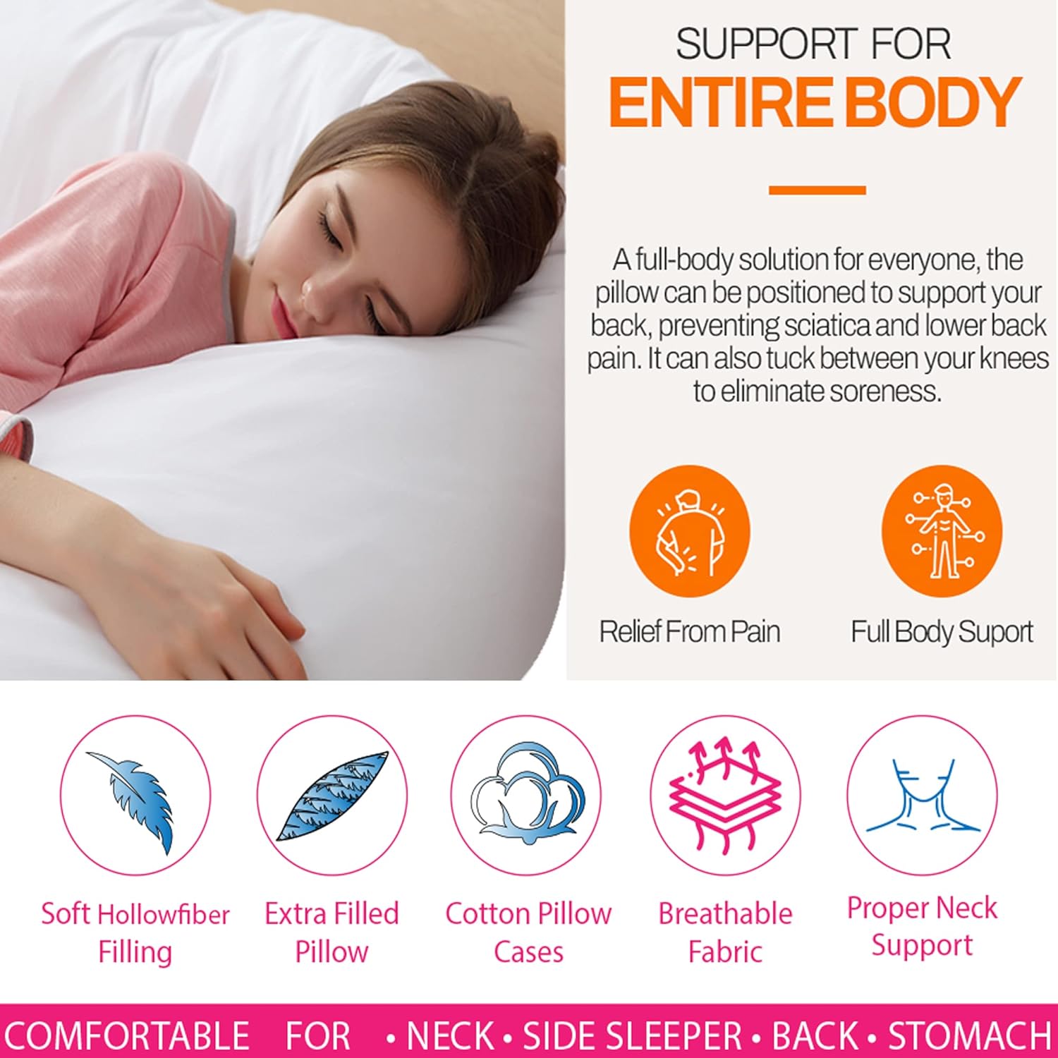 Multipurpose pillows for Fantastic Neck and Back Support. Orthopedic and Nursing Support Pillow. Use as you like Reading, Watching TV, a Sleeping Pillow, or just to relax. V shape gives orthopedic help  around the back and sides of your neck. Ideal for pregnant ladies and incredible for nursing moms. If you are suffering from any allergy, then poly-cotton cover and generous amounts of hollow-fiber Non-Allergic v pillows are the perfect decision for comfortable sleep. High density down proof fabric to prevent fibber turning out.